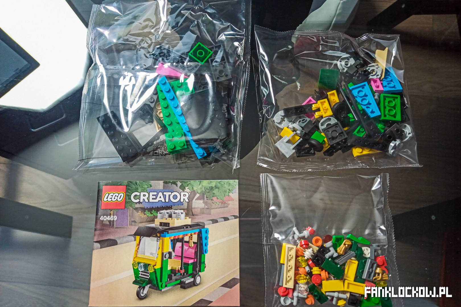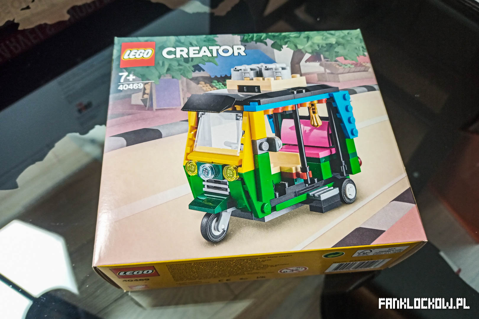 Pudełko zestawu 40469, wydanego w serii Creator (co jest ciekawe samo w sobie, bowiem rzadko widuje się tę serię bez dopisku 3 in 1) jest miękkie i wymaga ostrożności, jeśli zależy nam na jego dobrym stanie. W odróżnieniu od wielu innych, małych zestawów, opakowanie w przypadku tuk-tuka jest plombowane, a nie „rozrywalne”. To w sumie cieszy, bo dzięki temu można je łatwiej zarchiwizować.