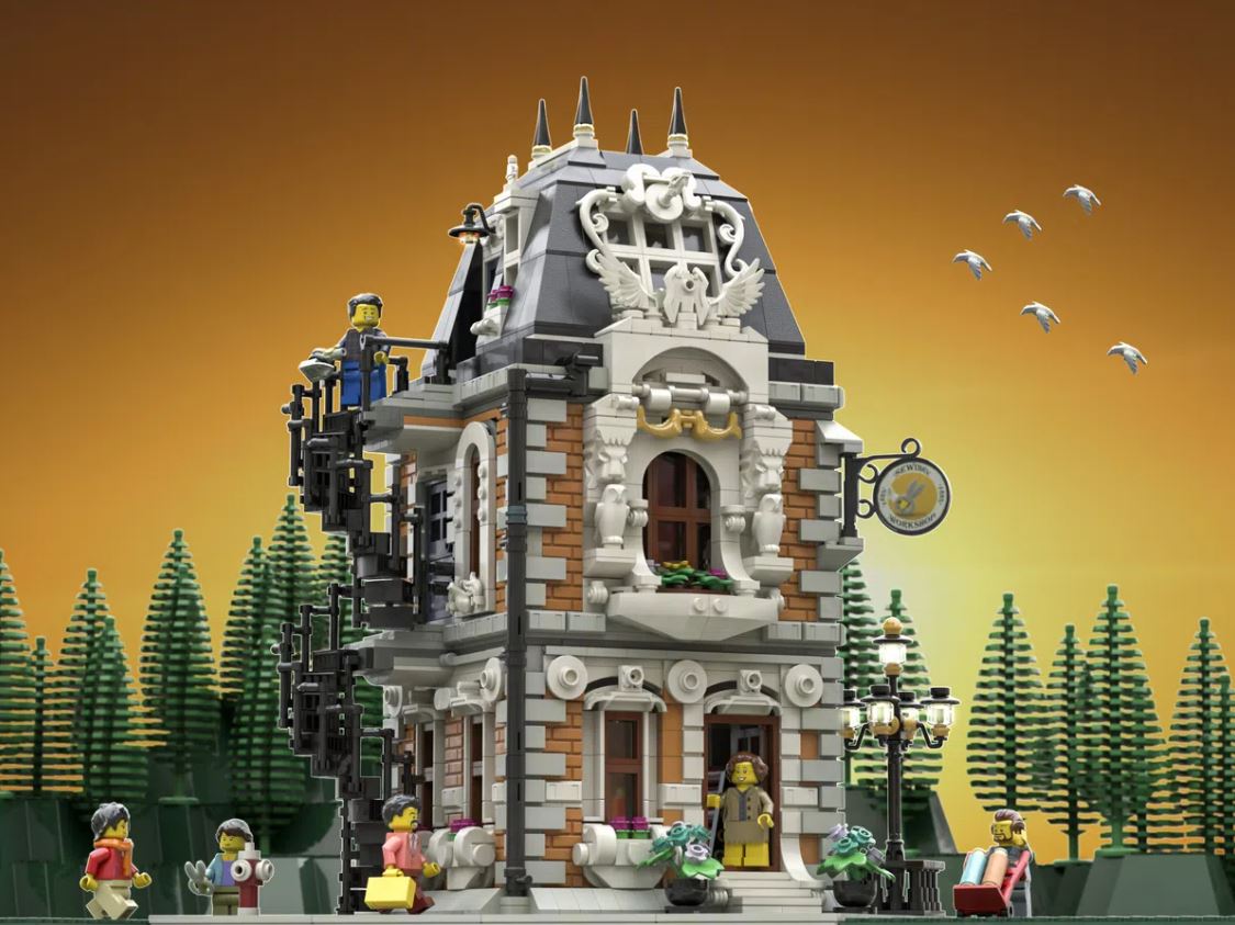 - Powodzenia nie wróżę także (chociaż chciałbym) drugiemu nowemu projektowi w peletonie, czyli Warsztatowi szewskiemu. Śliczny, niestandardowy (bo zbudowany po skosie) modular to… no… modular właśnie, a więc szansa, ze LEGO® wybierze go jako zestaw wart wypuszczenia jest raczej niewielka.