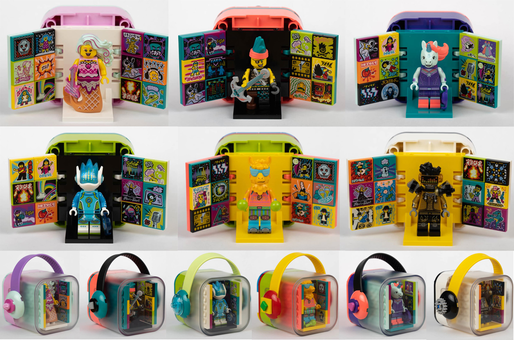 Zestawy o numerach 43102-43107 to tzw. Beatboxy. Każdy z nich zawiera jedną figurkę, 16 beatbitsów (specjalnych płytek 2×2, które będą „odpalać” odpowiednie efekty w dedykowanej aplikacji – dwie z nich są zawsze ekskluzywne dla danego zestawu) oraz pudełko z odpowiednimi zdobieniami (w dużej mierze bazującymi na schemacie LEGO® DOTS). Cena pojedynczego zestawu to 19,99 euro, a więc SPORO jak na podobną zawartość. Poniżej możecie zobaczyć kompilację zdjęć tych zestawów: