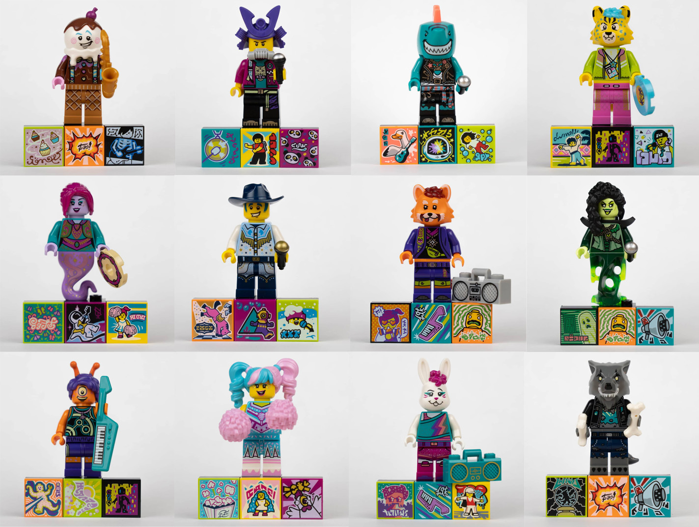 Druga mini-seria VIDIYO™ to kolekcja minifigurek, która już nieco bardziej przemówi także do dorosłych kolekcjonerów. W tym wypadku w kartonowym opakowaniu (bardziej „biegli” kolekcjonerzy na pewno nie będą zadowoleni, bowiem taka forma pakowania wyklucza tzw. „macanie”) znajdziemy jedną figurkę, specjalną podstawkę oraz trzy beatbitsy (w tym jeden ekskluzywny). Figurki będą kosztować 4,99 euro, a w każdym opakowaniu zbiorczym znajdziemy ich dwa pełne komplety (w 1. serii mamy 12 wzorów) – będą one układane rzędami. Poniżej zobaczycie kompilację zdjęć wszystkich wzorów: