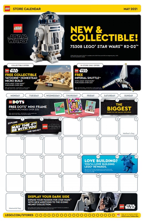 Tak naprawdę tę wieść dodaję tylko pro forma, bo promocje oficjalnych sklepów LEGO® na maj są już znane od dłuższego czasu i podsumowane tutaj. Jak wiadomo, maj upłynie nam pod znakiem Gwiezdnych Wojen, a dokładną rozpiskę promocji związanych z tym tematem znajdziecie na moim blogu w tym miejscu.
